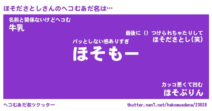 | ピコ太郎風あだ名 | 『ホコ六郎』『ピホ二郎』『ホソ十郎』 |