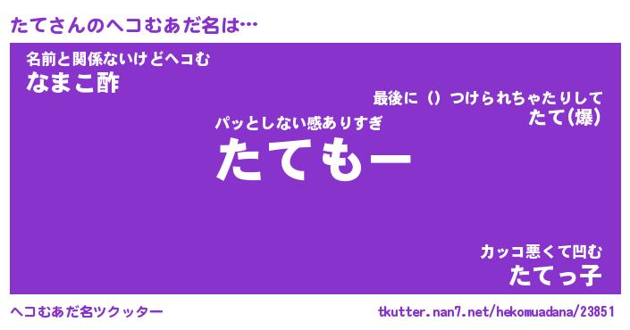 | ポケモン風あだ名 | 『タテチュウ』『タテダネ』『ヒタテ』 |