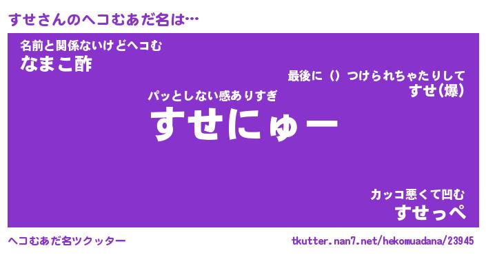 | ポケモン風あだ名 | 『スセチュウ』『スセダネ』『ヒスセ』 |