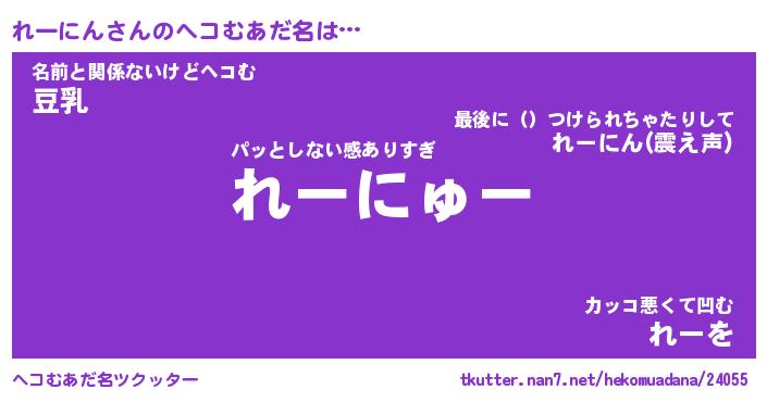 | 意味不明あだ名 | 『ペロリンれーにん』『永久保存れーにん』 |