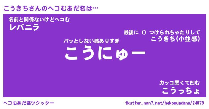 | 意味不明あだ名 | 『ペロリンこうきち』『永久保存こうきち』 |