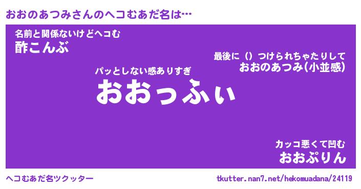 | 胡散臭い通販商品みたいなあだ名 | 『必ず成功する霊験あらたかなお札…その名も「おおのあつみ」』 |