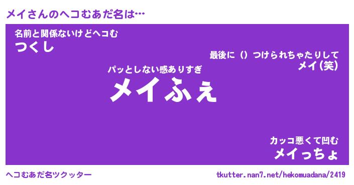 | 2回繰り返すあだ名 | 『メイメイ』『メメイイ』『ぬらぬら』 |