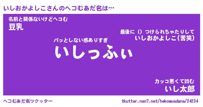 | ピコ太郎風あだ名 | 『イコ十郎』『ピイ史郎』『イシ一郎』 |