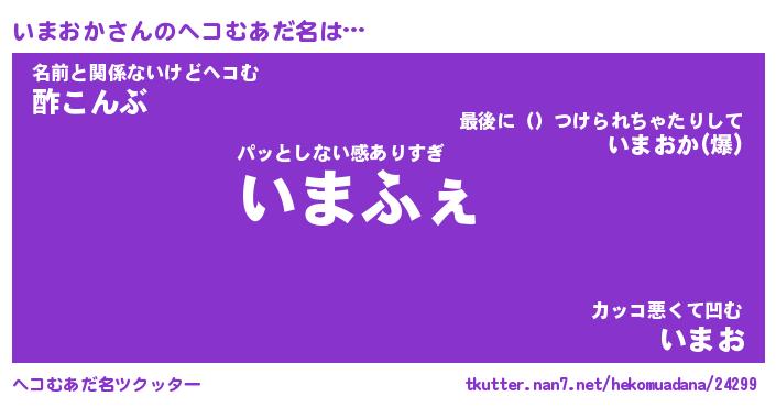 | 男性向けラノベタイトル風あだ名 | 『いまおかの憂鬱』 |