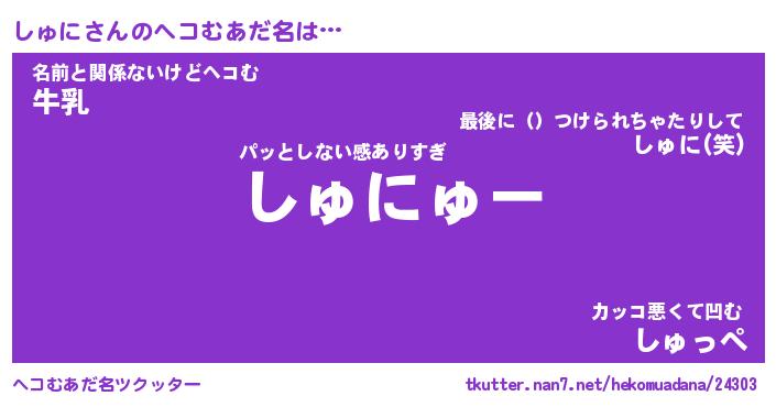 意味不明あだ名 | 『ペロリンしゅに』『しゅにフォーエバー』 |