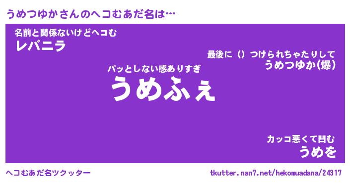 | ファンタジー風あだ名 | 『ウメフェル』『エターナルウメツユカー』 |