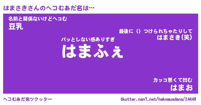 | 2回繰り返すあだ名 | 『はまはま』『ははまま』『ぬるぬる』 |