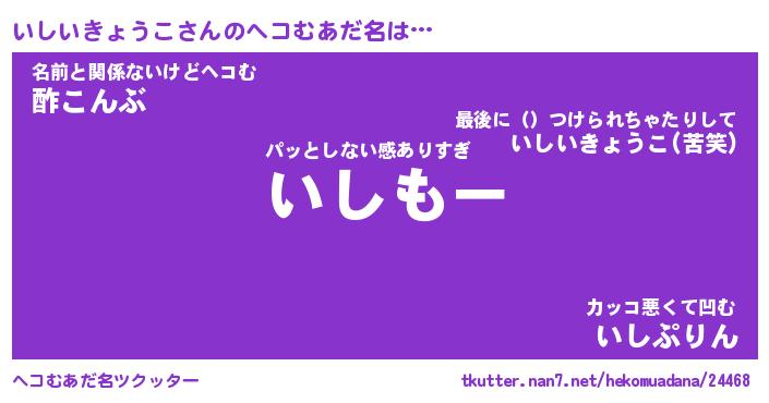 | ヒーロー風カッコイイあだ名 | 『スーパーイシイキョウコ』 |