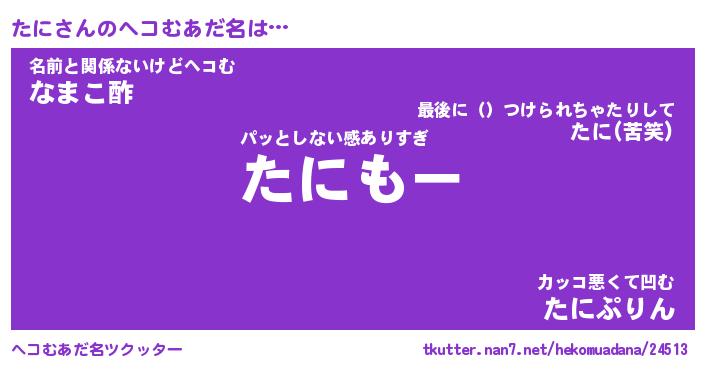 | 2回繰り返すあだ名 | 『たにたに』『たたにに』『ねちねち』 |