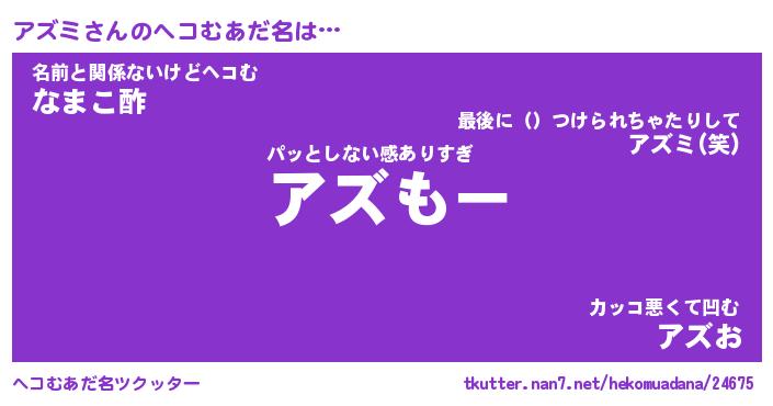 | 意味不明あだ名 | 『ペロリンアズミ』『アズミフォーエバー』 |