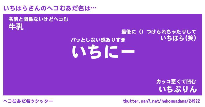 | 意味不明あだ名 | 『ペロリンいちはら』『永久保存いちはら』 |