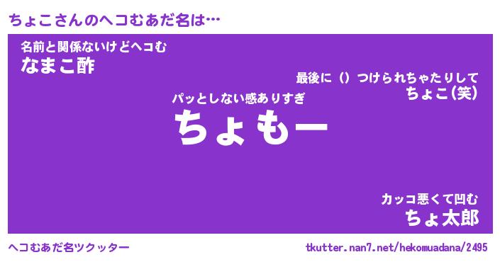 | 2回繰り返すあだ名 | 『ちょちょ』『ちちょょ』『いじいじ』 |