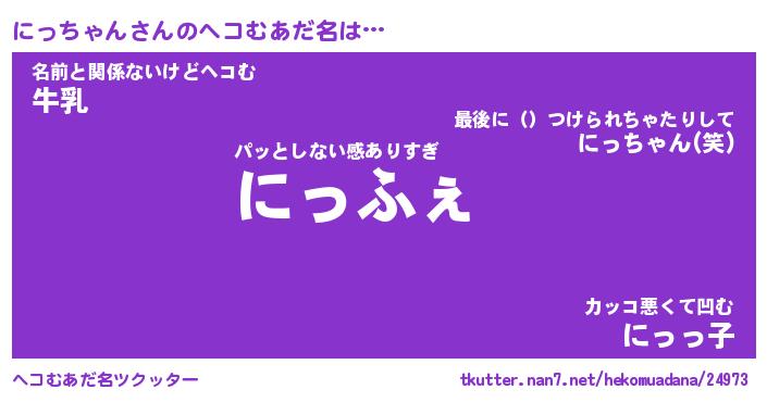 | ファンタジー風あだ名 | 『ニッフェル』『エターナルニッチャンー』 |