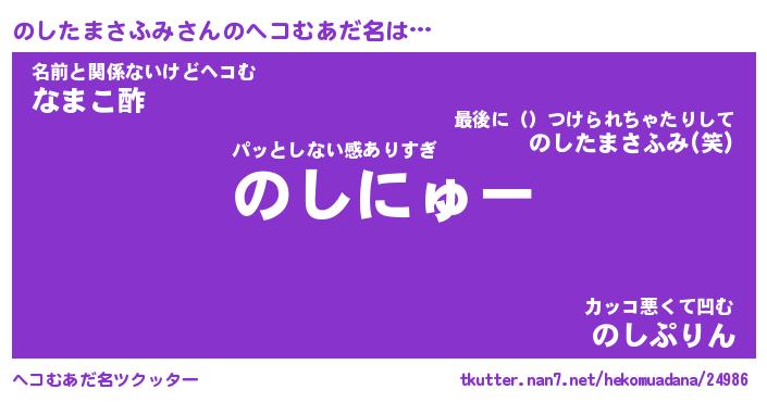 | ポケモン風あだ名 | 『ノシチュウ』『ノシタダネ』 |