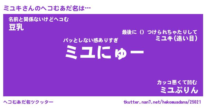 | 意味不明あだ名 | 『ペロリンミユキ』『ミユキフォーエバー』 |