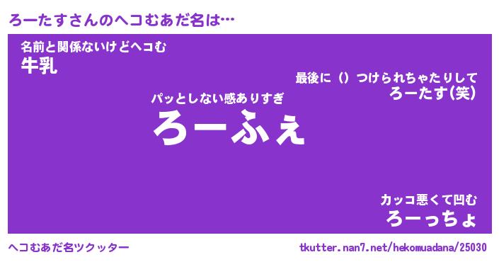 | 意味不明あだ名 | 『ペロリンろーたす』『永久保存ろーたす』 |