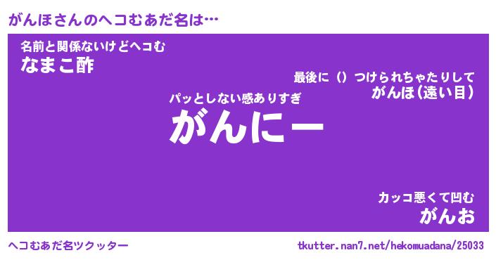 | 意味不明あだ名 | 『ペロリンがんほ』『がんほフォーエバー』 |