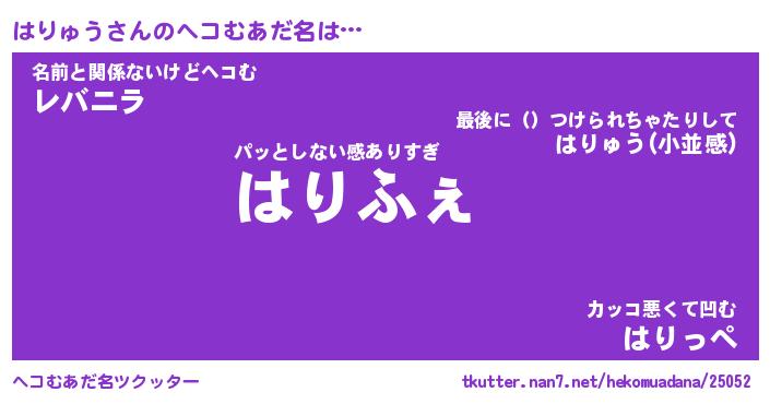 | ファンタジー風あだ名 | 『ハリフェル』『エターナルハリュウー』 |