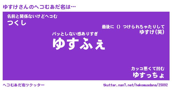 | ファンタジー風あだ名 | 『ユスフェル』『エターナルユスケー』 |