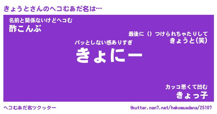 | 意味不明あだ名 | 『ペロリンきょうと』『永久保存きょうと』 |