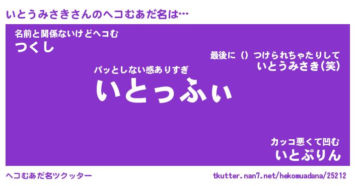 | ヒーロー風カッコイイあだ名 | 『スーパーイトウミサキ』『銀牙騎士イト』 |