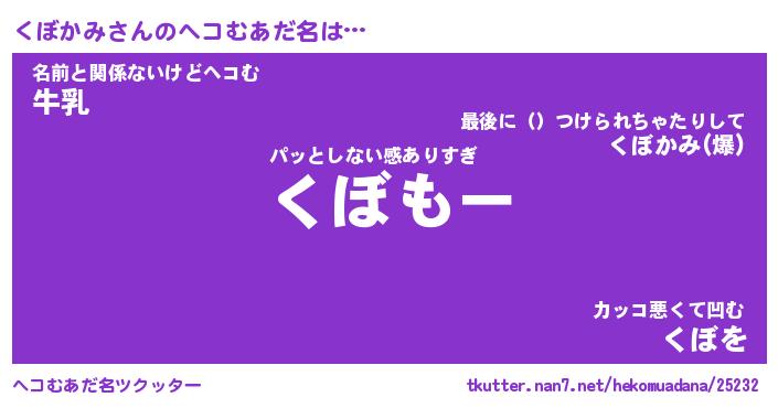 | 意味不明あだ名 | 『ペロリンくぼかみ』『永久保存くぼかみ』 |