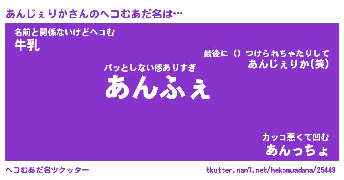 | 意味不明あだ名 | 『ペロリンあんじぇりか』 |
