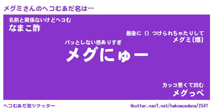 | ポケモン風あだ名 | 『メグチュウ』『メグミダネ』 |