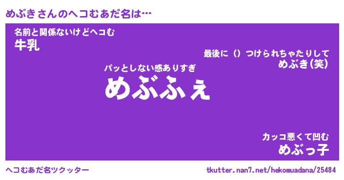 | 2回繰り返すあだ名 | 『めぶめぶ』『めめぶぶ』『おたおた』 |