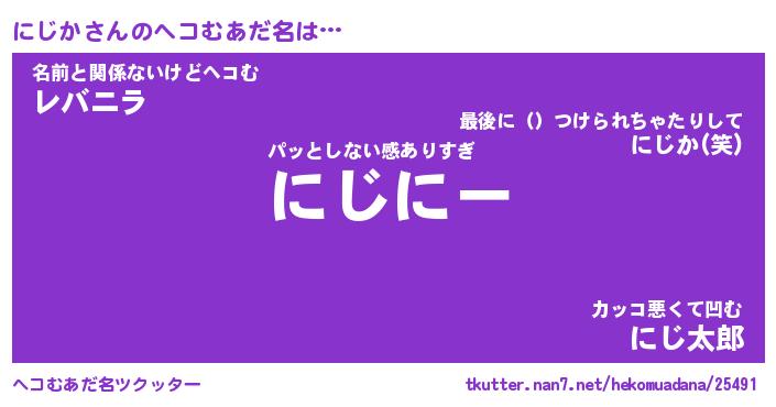 | ヒーロー風カッコイイあだ名 | 『スーパーニジカ』『ウルトラにじかマン』 |