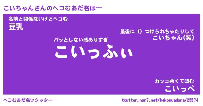 | 男性向けラノベタイトル風あだ名 | 『こいちゃんの憂鬱』 |