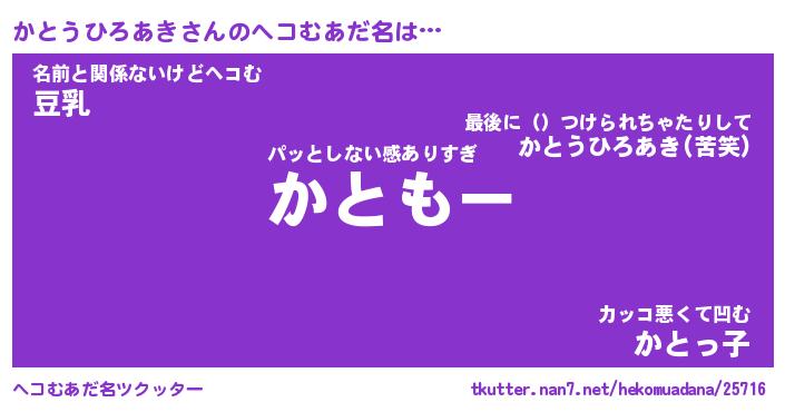 | 意味不明あだ名 | 『ペロリンかとうひろあき』 |