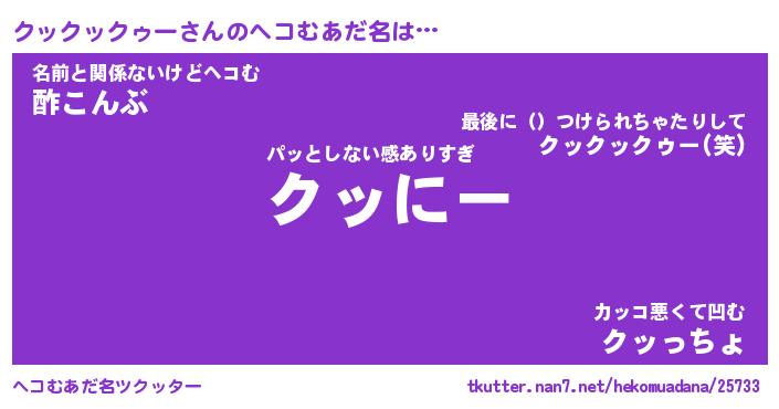 | ポケモン風あだ名 | 『クッチュウ』『クックダネ』 |