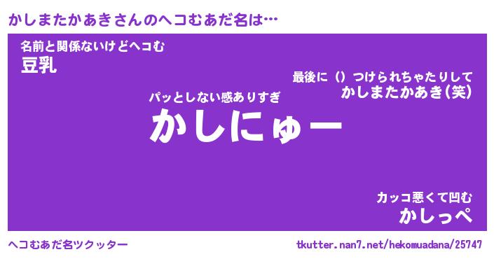 | ヒーロー風カッコイイあだ名 | 『スーパーカシマタカアキ』 |