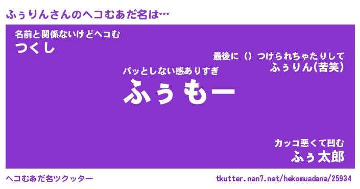 | 男性向けラノベタイトル風あだ名 | 『ふぅりんの憂鬱』 |