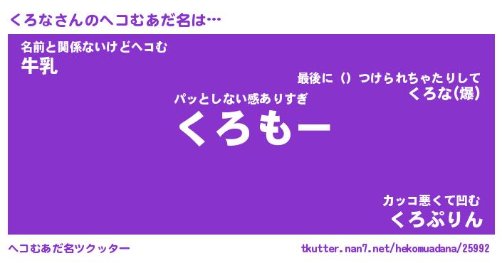 | 恥ずかしいあだ名 | 『プリティーくろな』『くろっちょ』 |