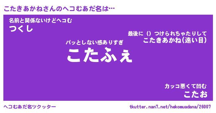 | 意味不明あだ名 | 『ペロリンこたきあかね』 |