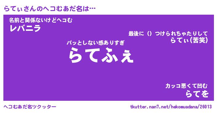 | ヒーロー風カッコイイあだ名 | 『スーパーラティ』『ウルトラらてぃマン』 |