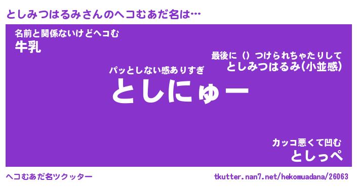 | 恥ずかしいあだ名 | 『プリティーとしみつはるみ』『としちん』 |