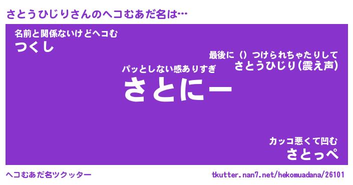 | ヒーロー風カッコイイあだ名 | 『スーパーサトウヒジリ』『銀牙騎士サト』 |