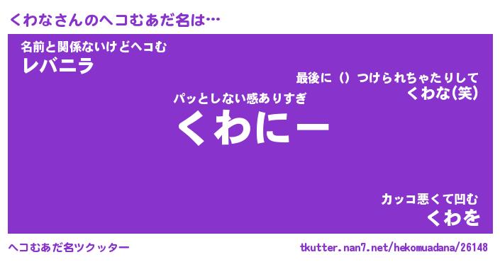 | ヒーロー風カッコイイあだ名 | 『スーパークワナ』『ウルトラくわなマン』 |