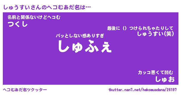| ファンタジー風あだ名 | 『シュフェル』『エターナルシュウスイー』 |