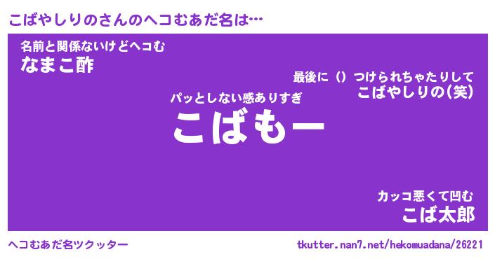 | 胡散臭い通販商品みたいなあだ名 | 『必ず成功する霊験あらたかなお札…その名も「こばやしりの」』 |