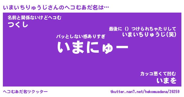 | 男性向けラノベタイトル風あだ名 | 『いまいちりゅうじの憂鬱』 |