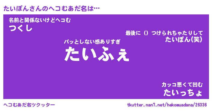 | 男性向けラノベタイトル風あだ名 | 『たいぽんの憂鬱』 |