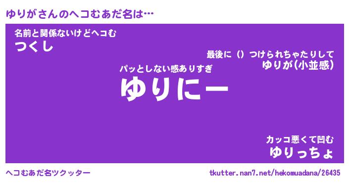 | 意味不明あだ名 | 『ペロリンゆりが』『ゆりがフォーエバー』 |