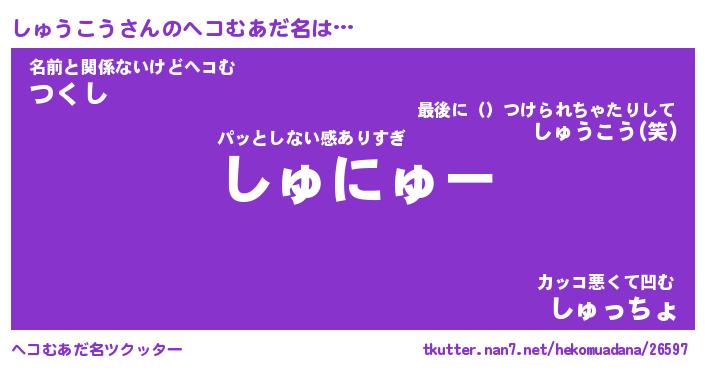 | 男性向けラノベタイトル風あだ名 | 『しゅうこうの憂鬱』 |