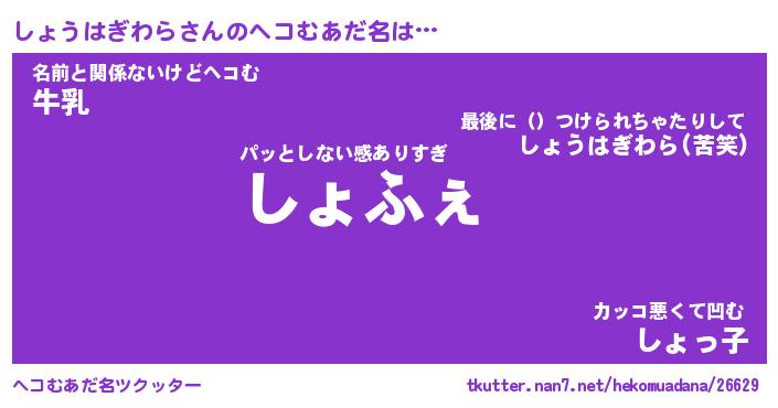 | 2回繰り返すあだ名 | 『しょしょ』『ししょょ』『うずうず』 |