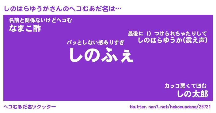 | 恥ずかしいあだ名 | 『プリティーしのはらゆうか』『しのちん』 |